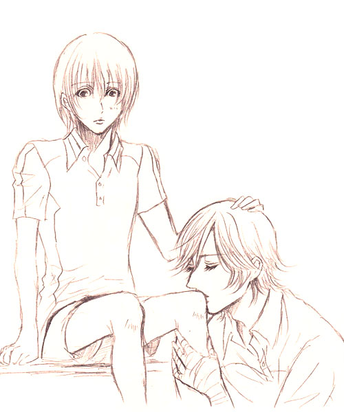 ついったでアップした不二の膝にちゅうする白石の図
